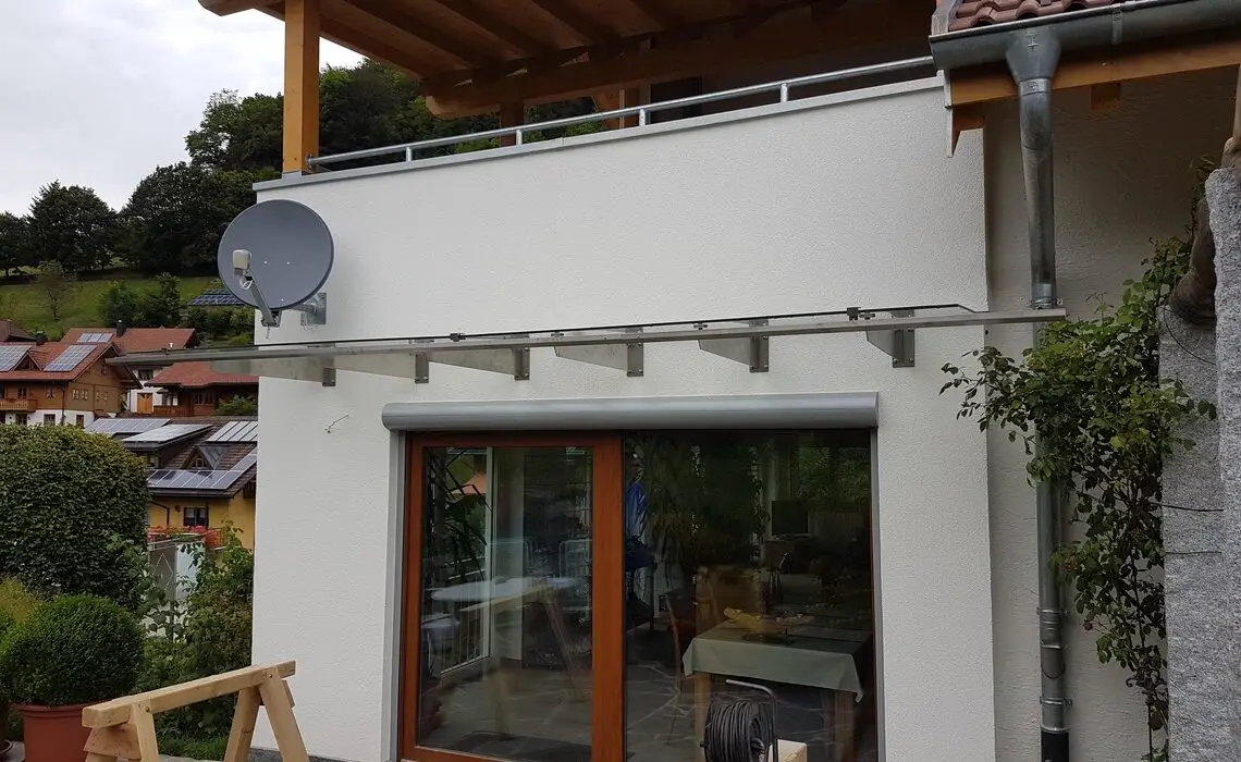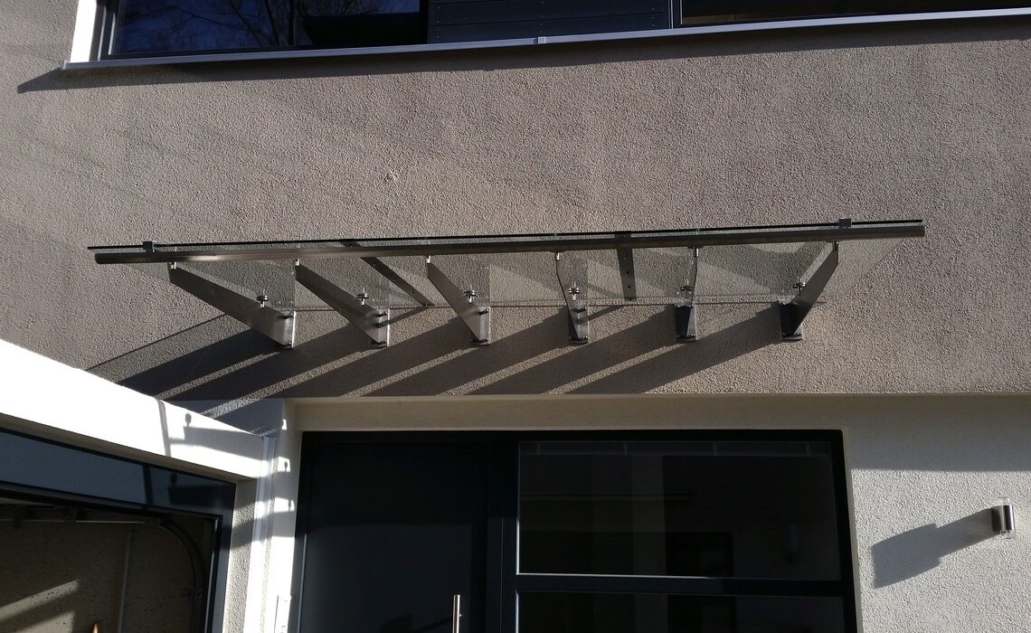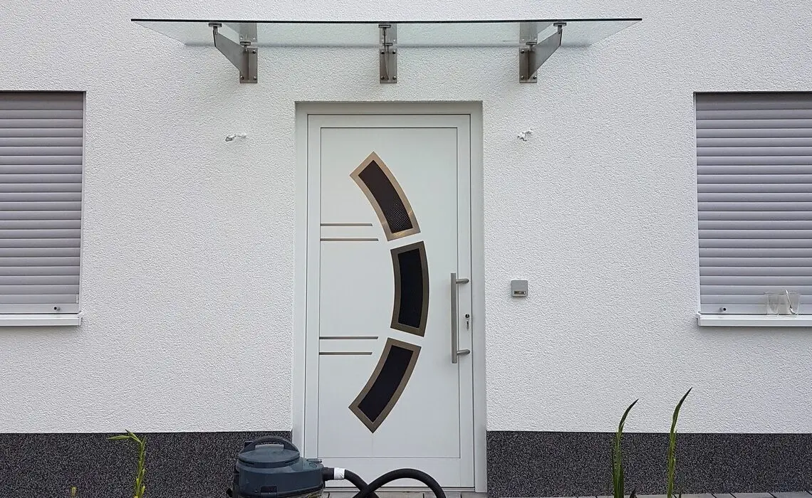 Das Glasvordach BERN wirkt schwebend leicht – und schützt Ihren Eingangsbereich zuverlässig vor Wind und Wetter.